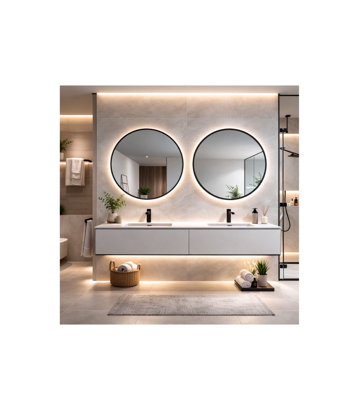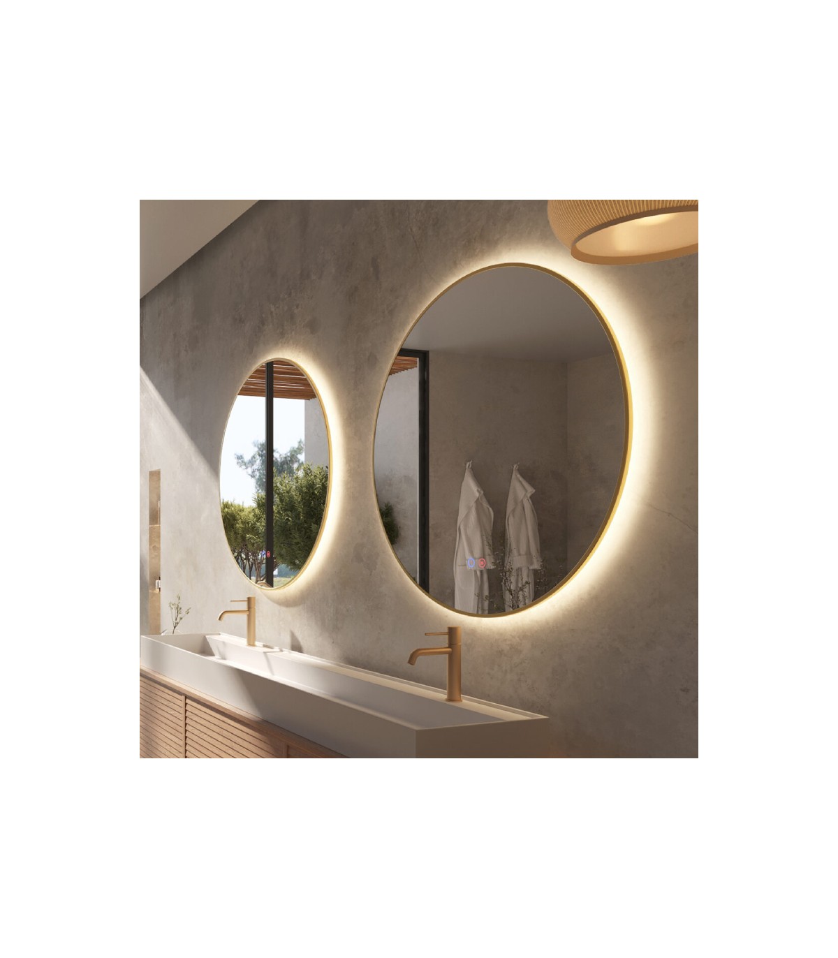 - Espelho redondo retroiluminado com iluminação LED.