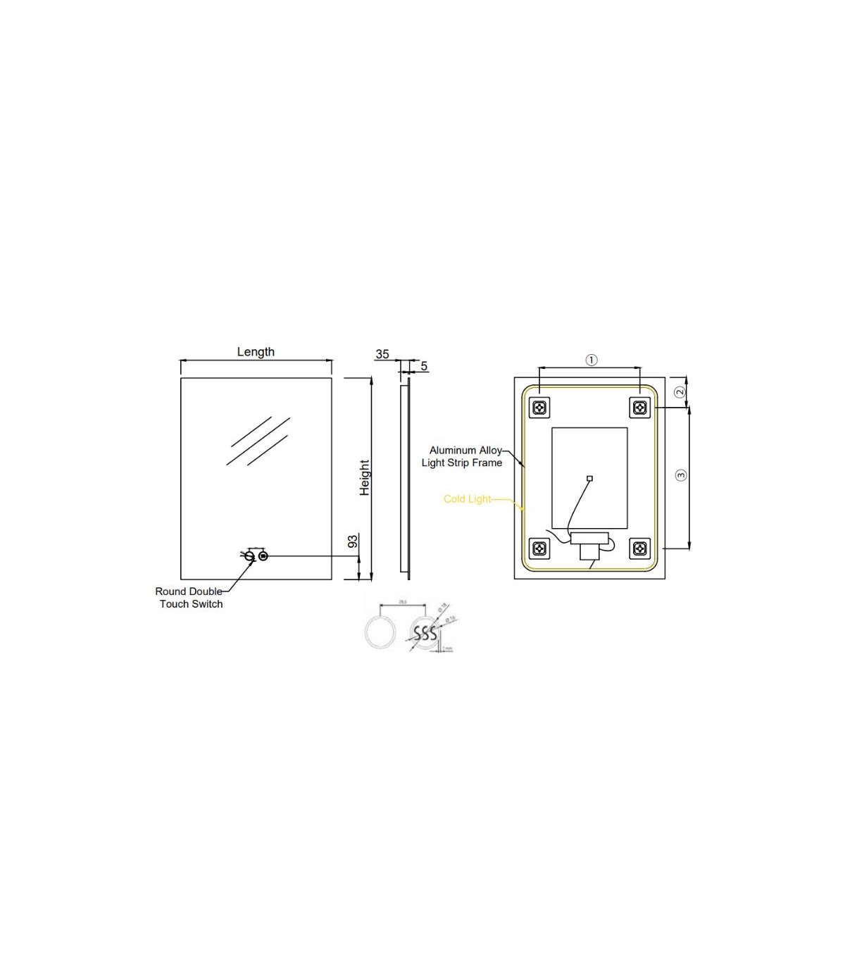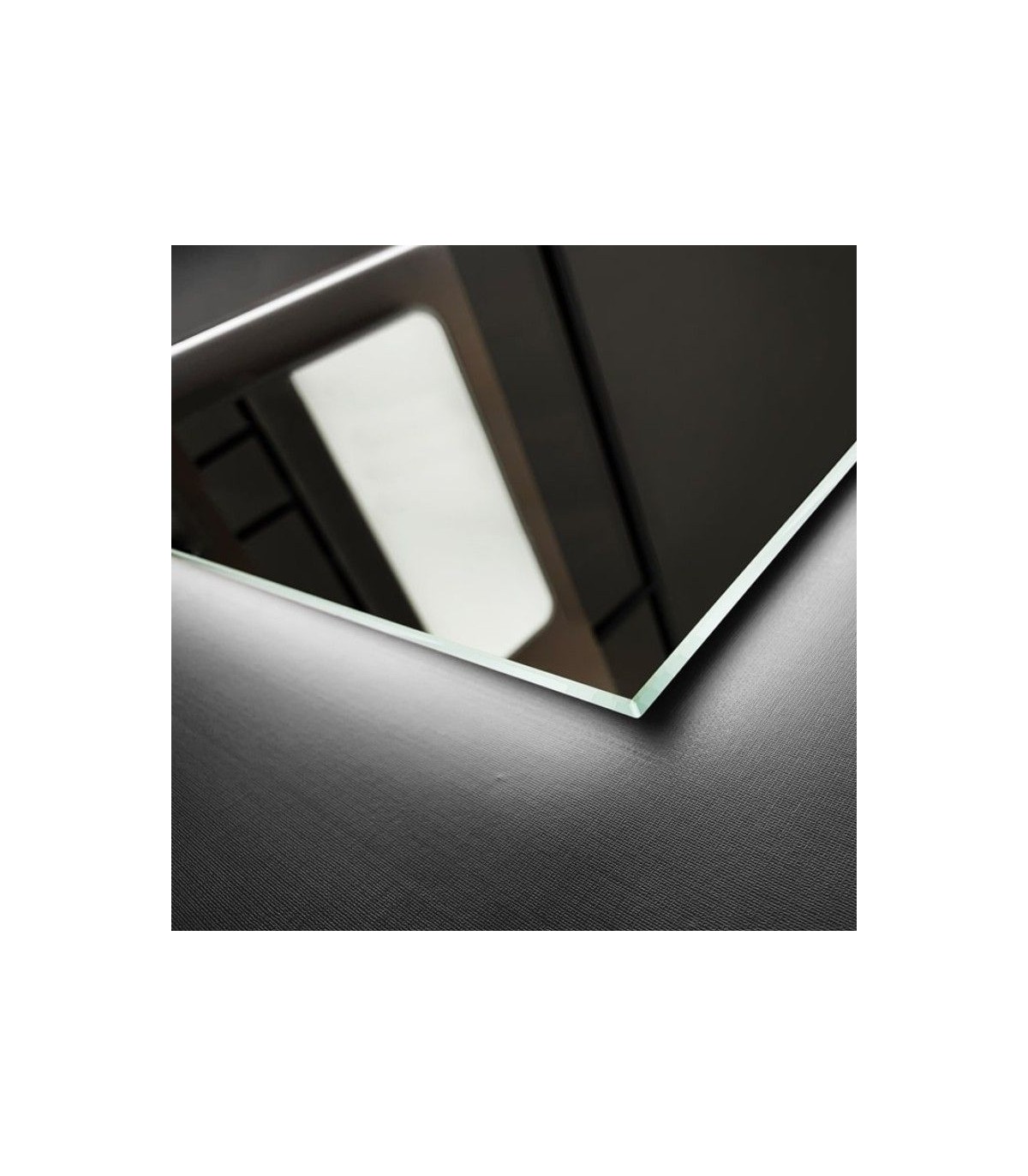 - Espelho retangular liso com moldura em alumínio na parte traseira.