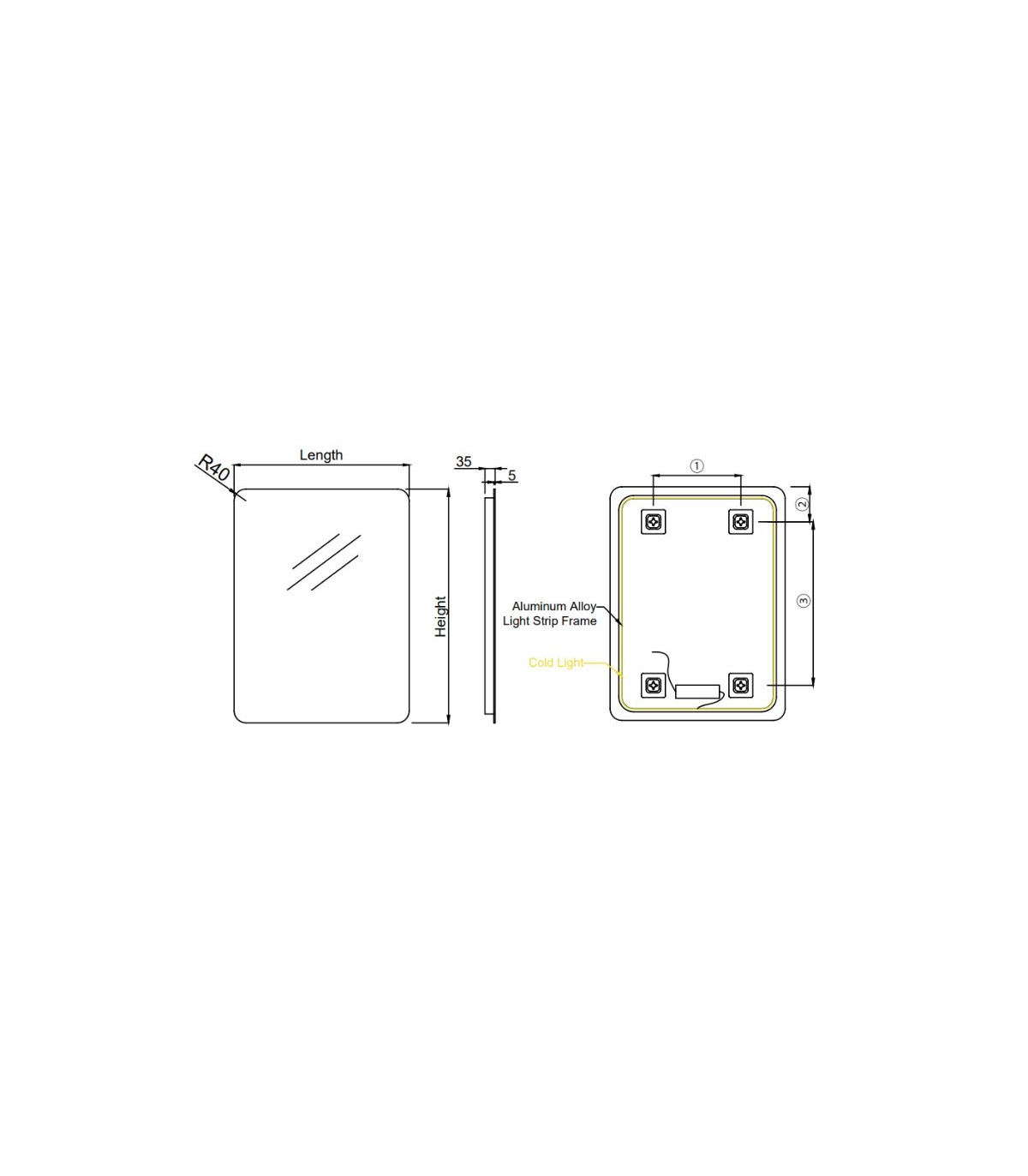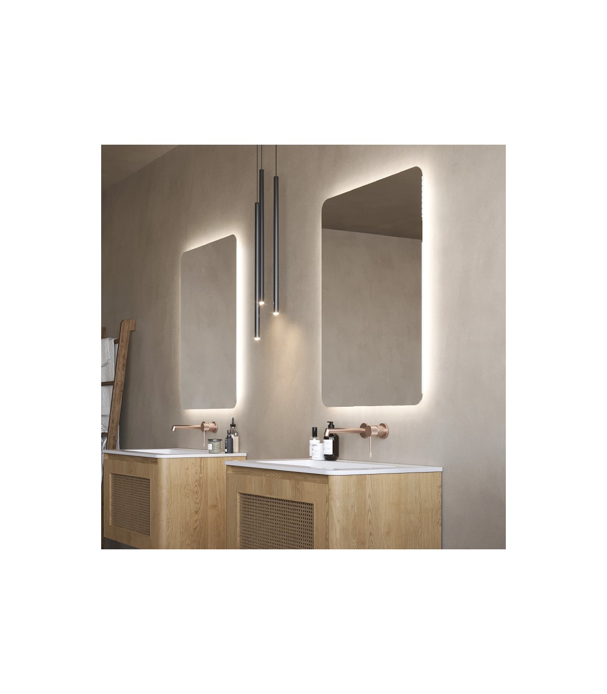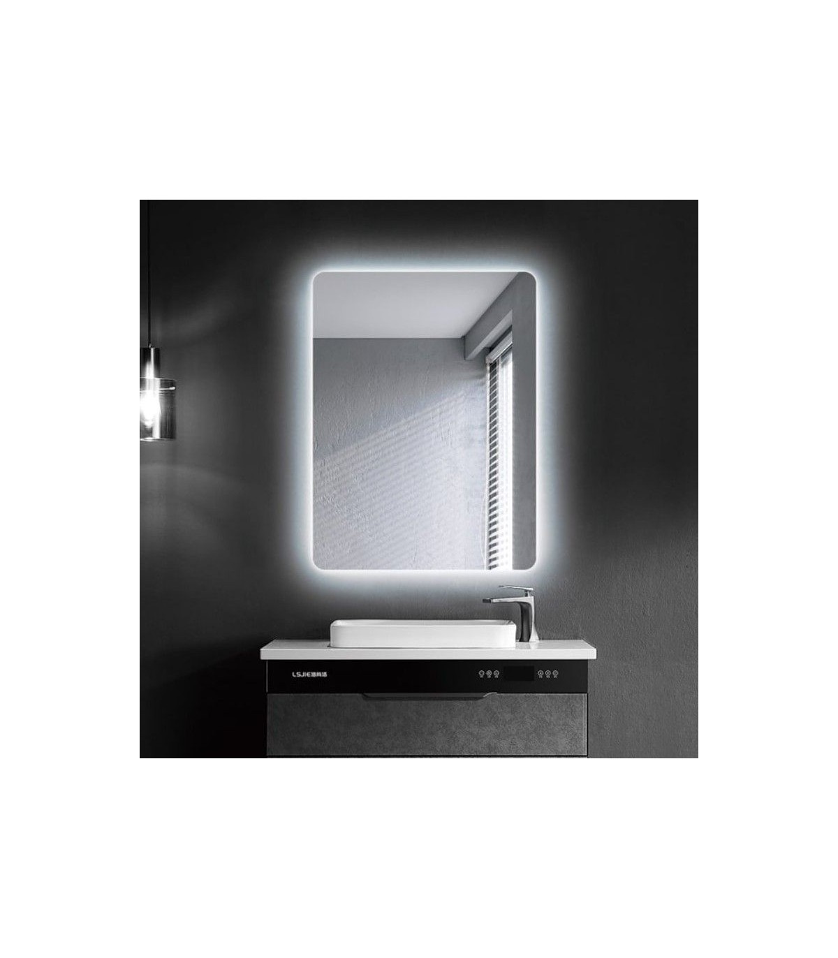 Espelho quadrado retroiluminado com bordos arredondados modelo Dinamarca.
