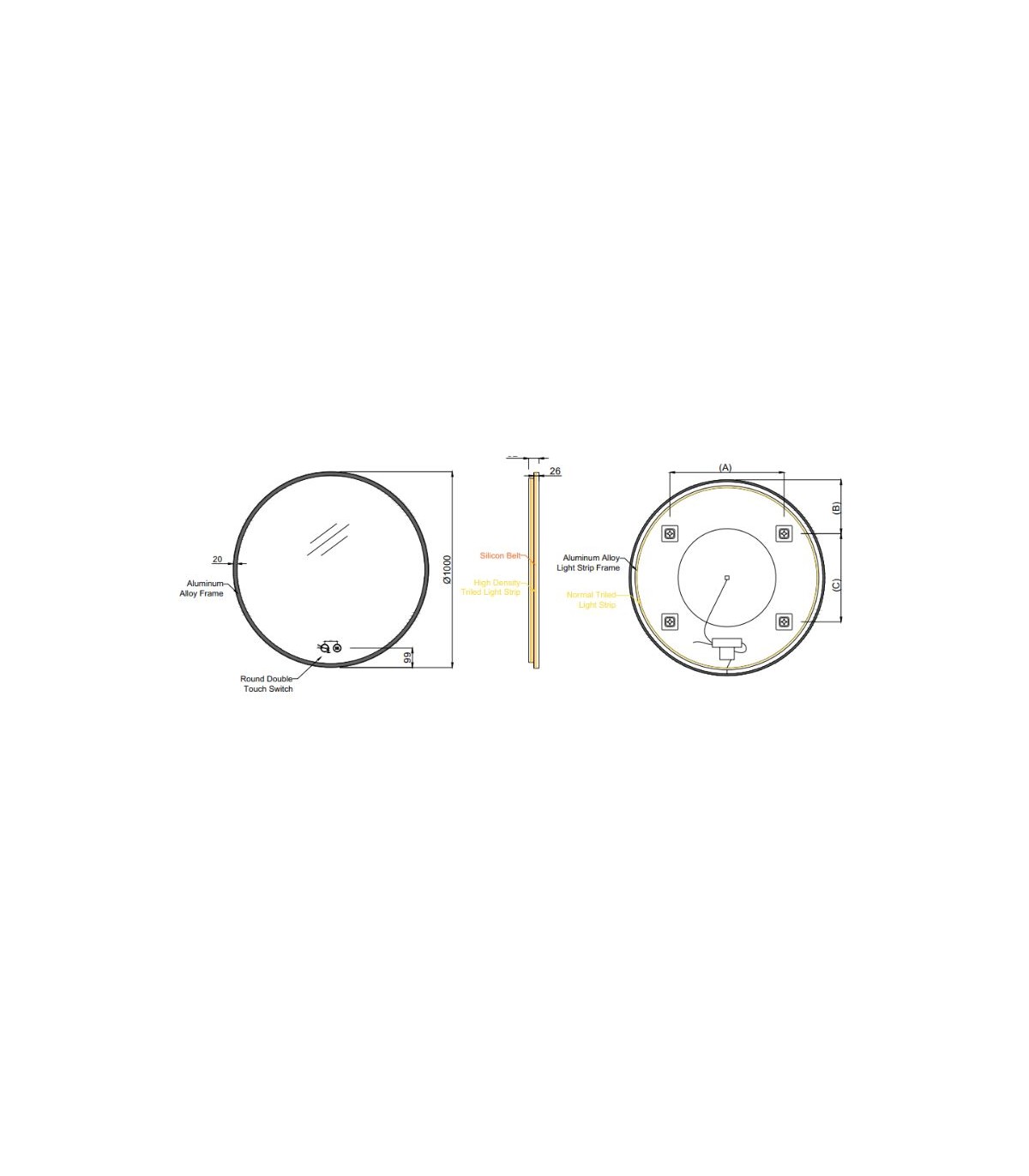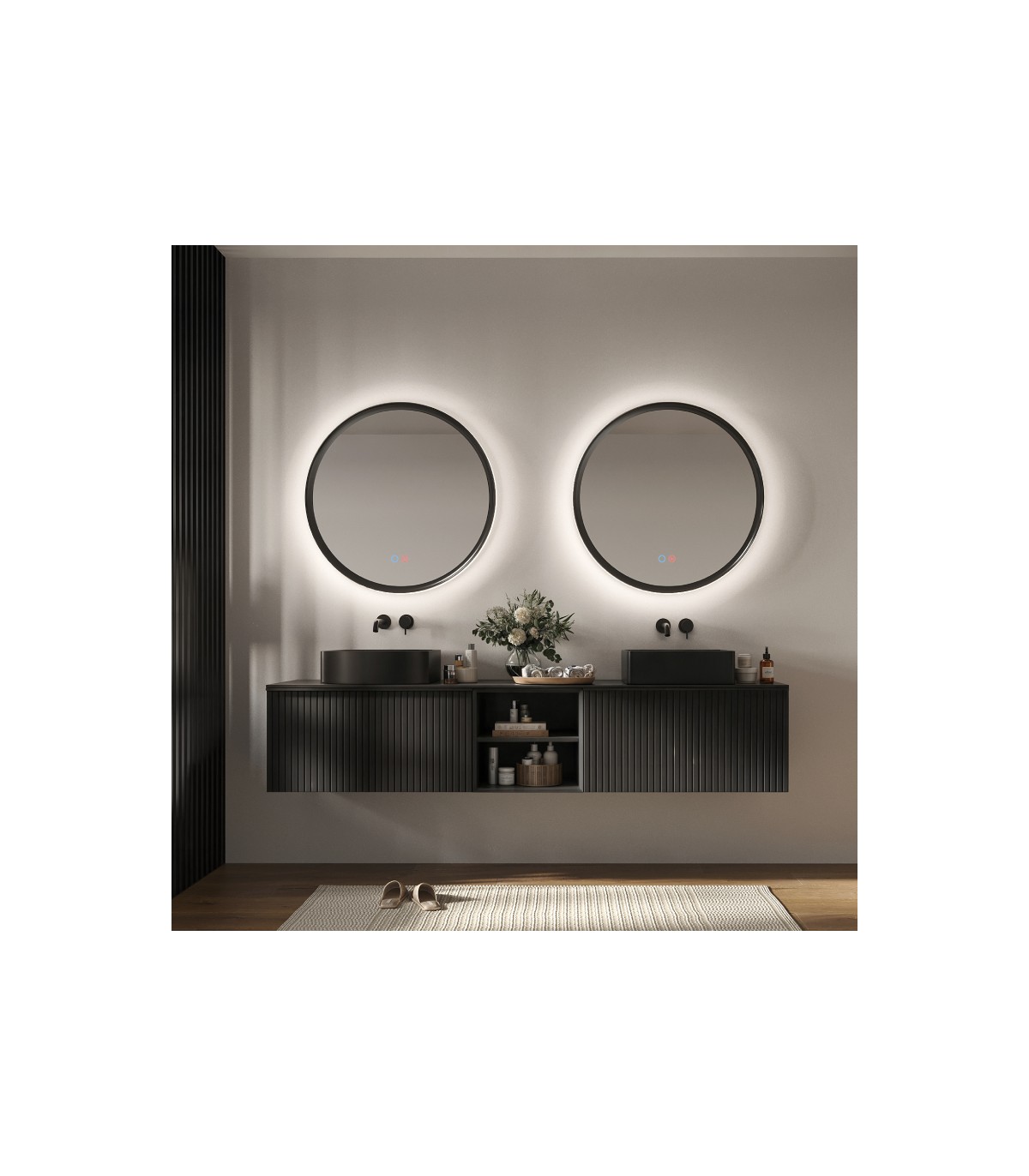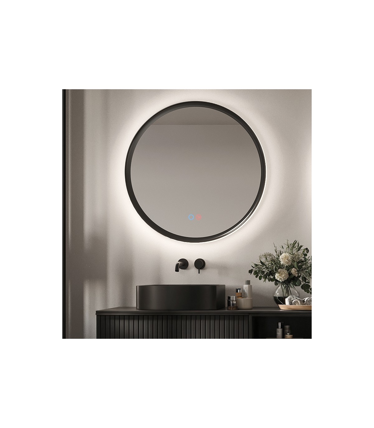 Espelho redondo retroiluminado com luz perimetral e moldura TORINO da Ledimex.