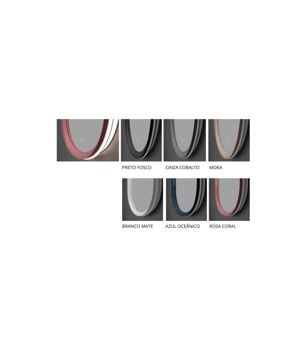 Moldura em até 6 acabamentos: preto mate, branco mate, moka, cinza cobalto, azul oceano e rosa coral.