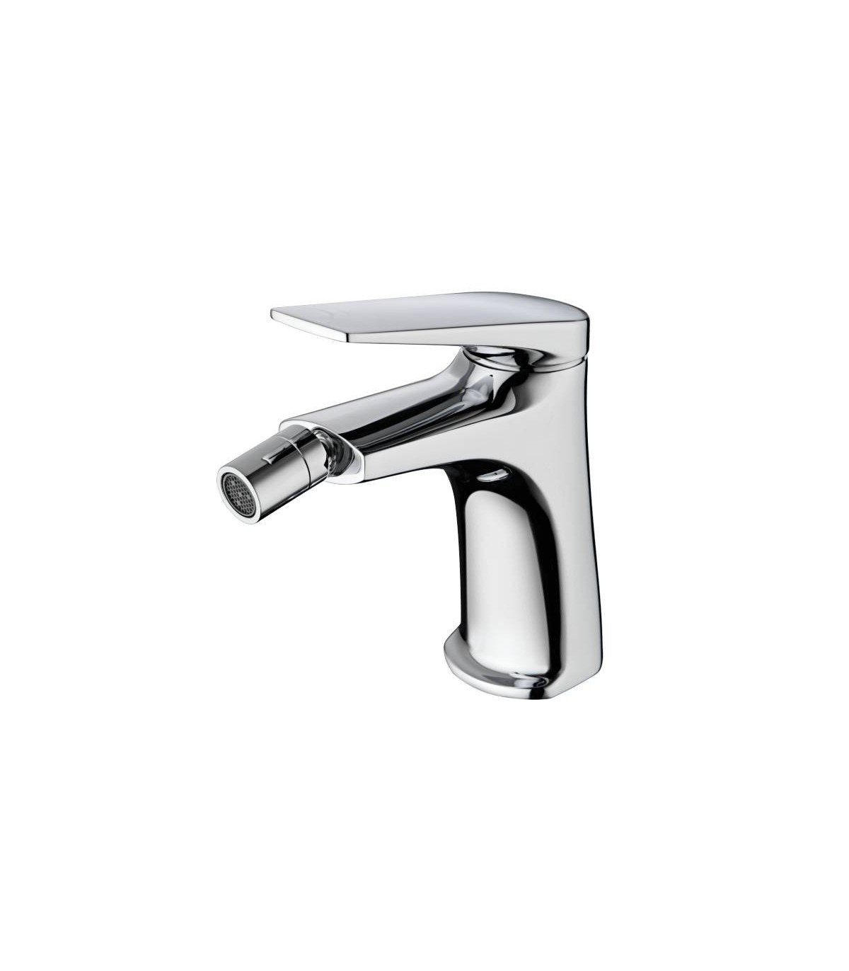 Torneira monocomando para bidé em latão com acabamento cromado.