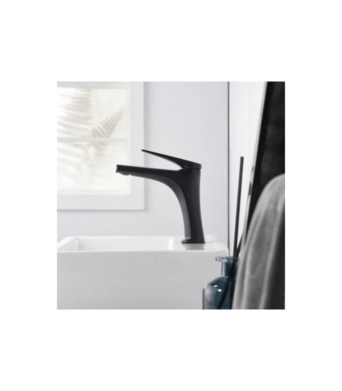 Torneira monocomando para lavatório em latão com acabamento preto fosco.