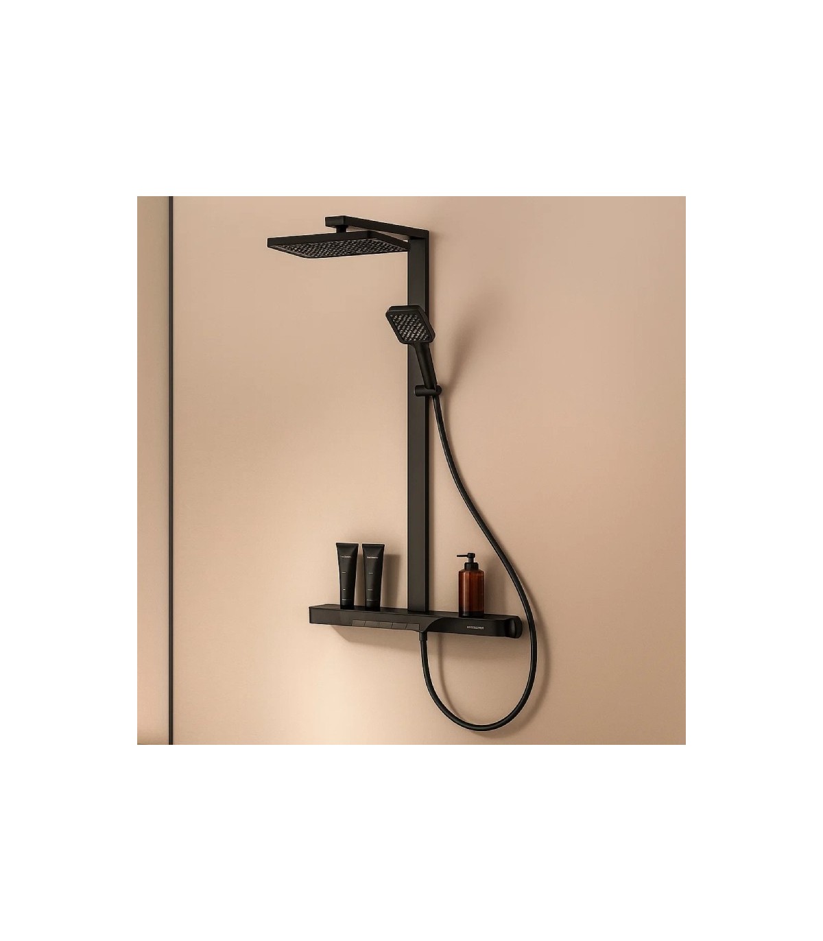 Coluna de duche com prateleira de vidro temperado.