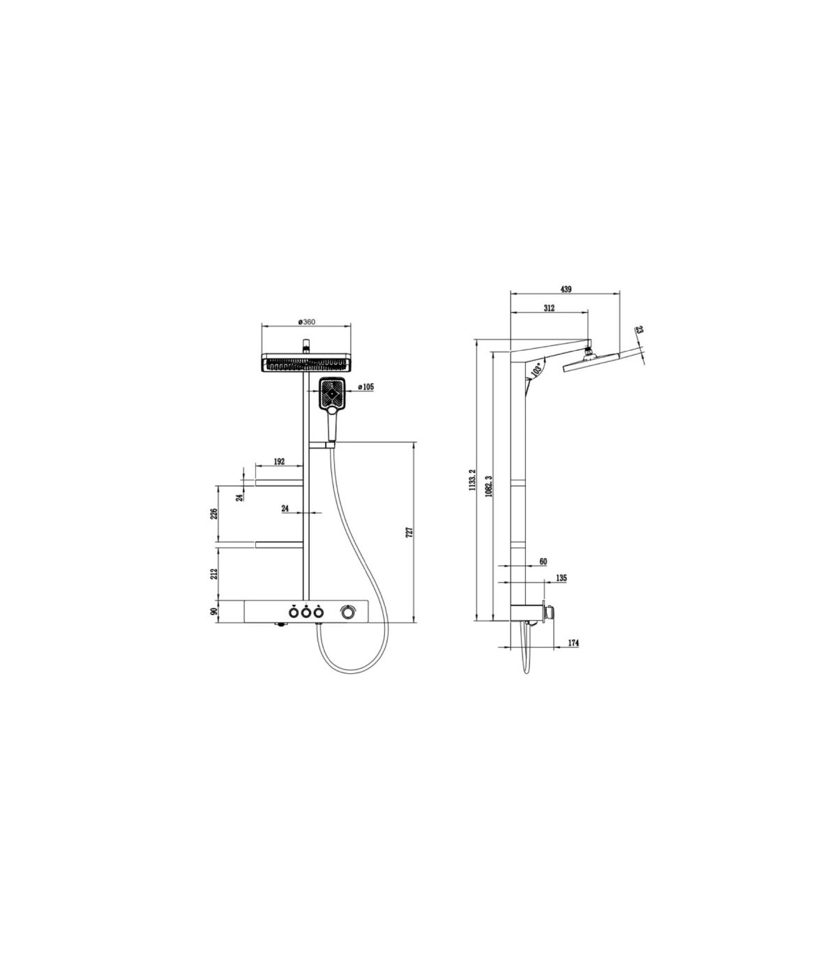 Chuveiro superior: chuva, massagem, chuva-massagem.