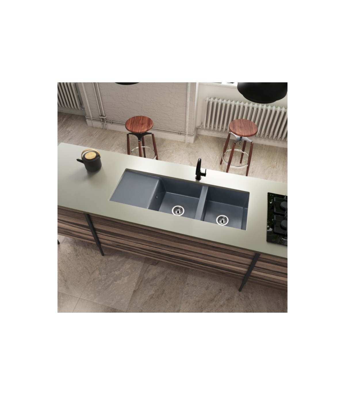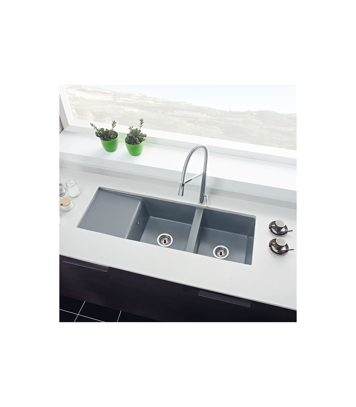 • Composto por duas cubas retangulares + escorredor.