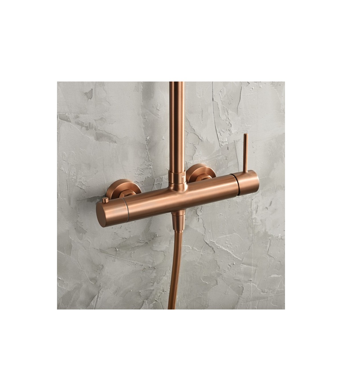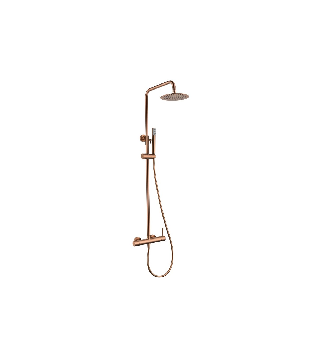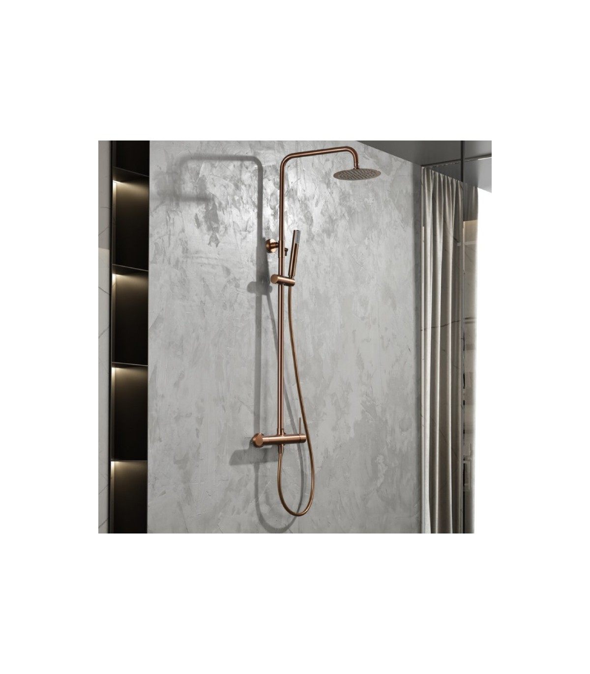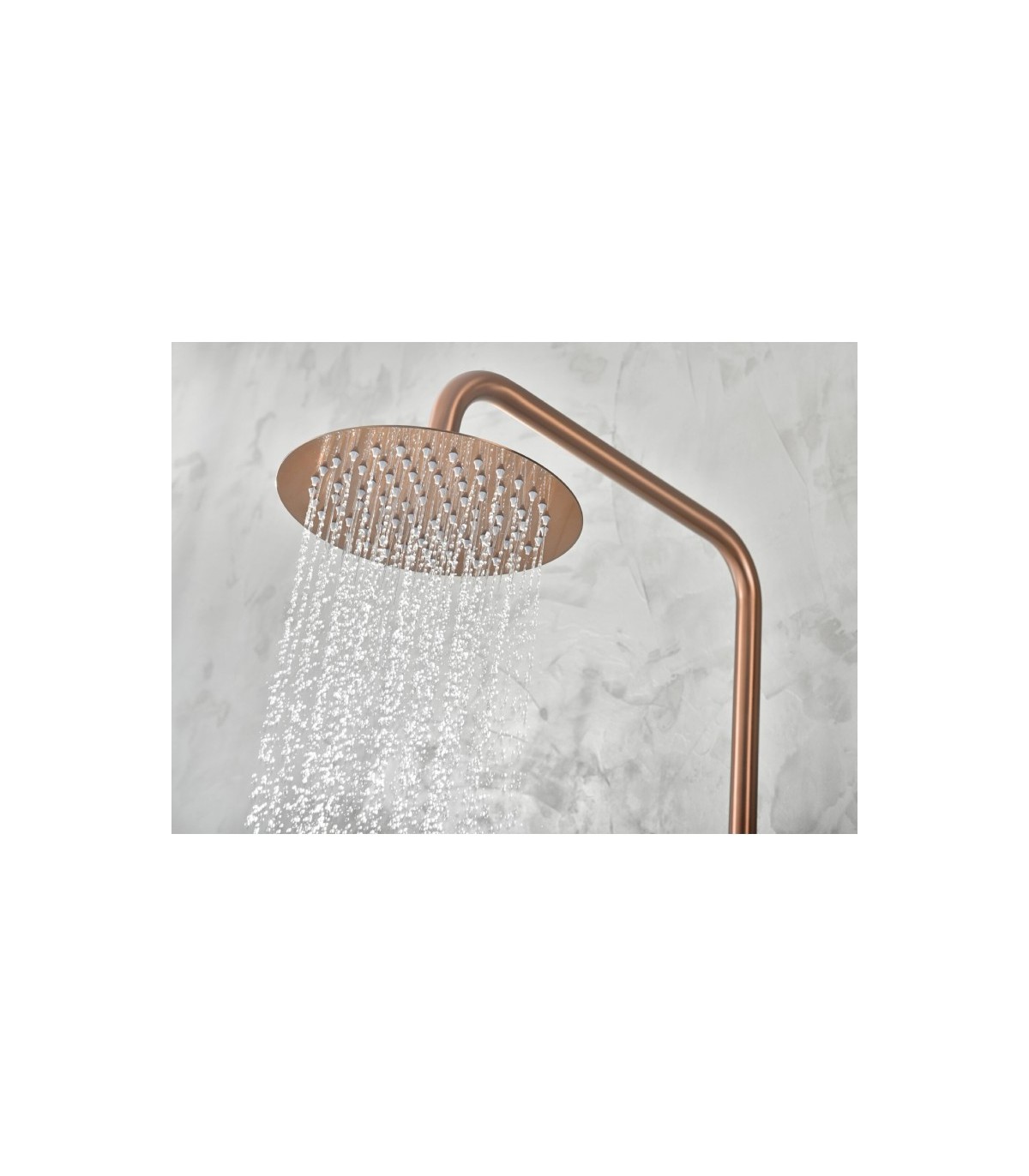 • Chuveiro superior em aço inox S.304 Ø20 cm, extraplano, acabamento ouro rosa escovado e com sistema anticalcário