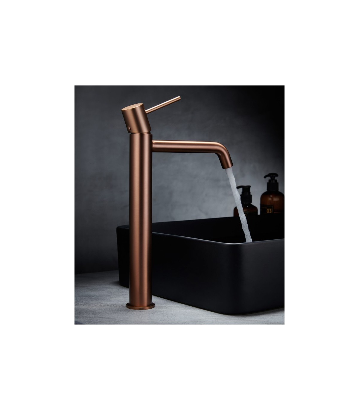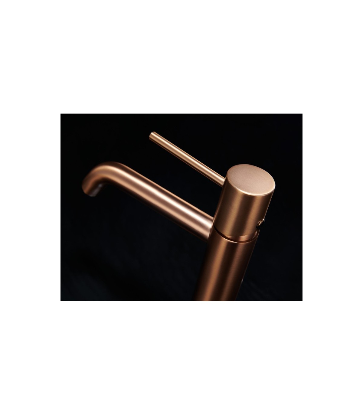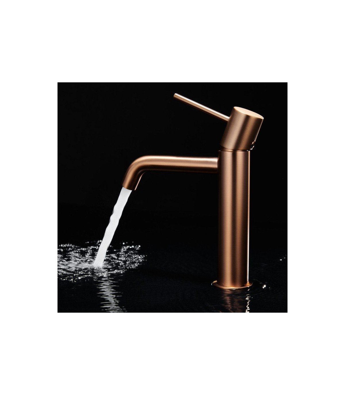• Misturadora monocomando em latão com acabamento ouro rosa escovado e distribuidor incorporado