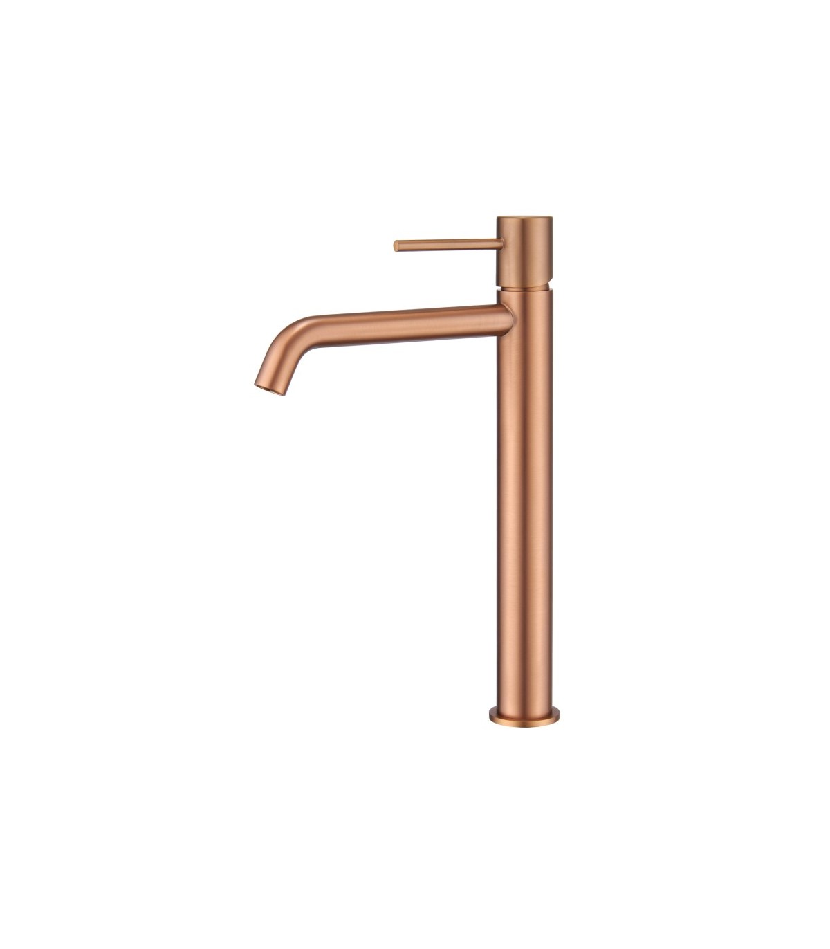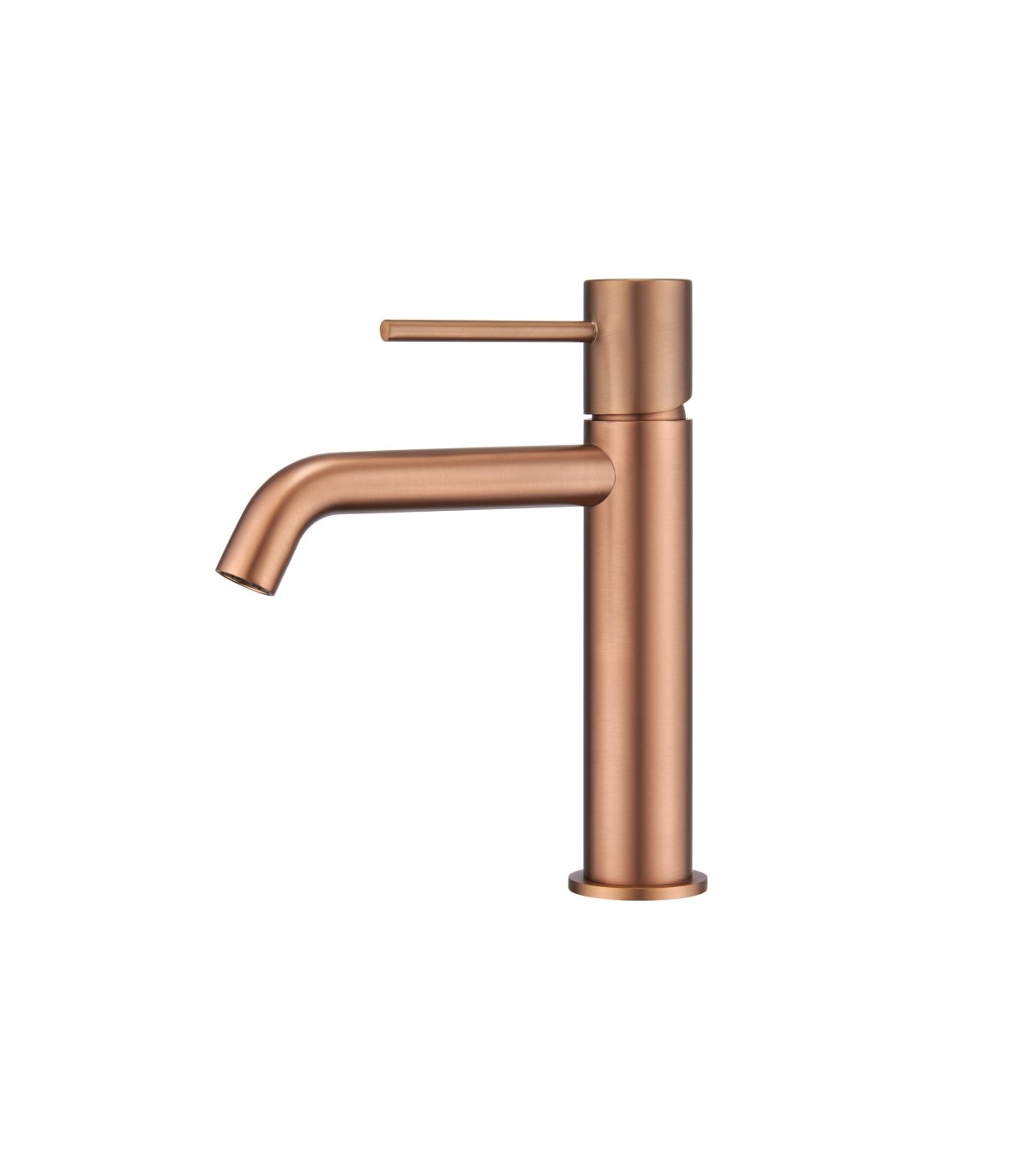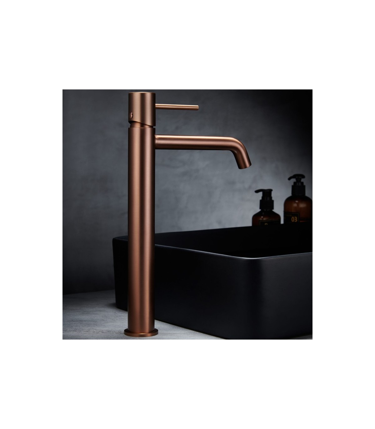 • Misturadora monocomando em latão com acabamento ouro rosa escovado e distribuidor incorporado