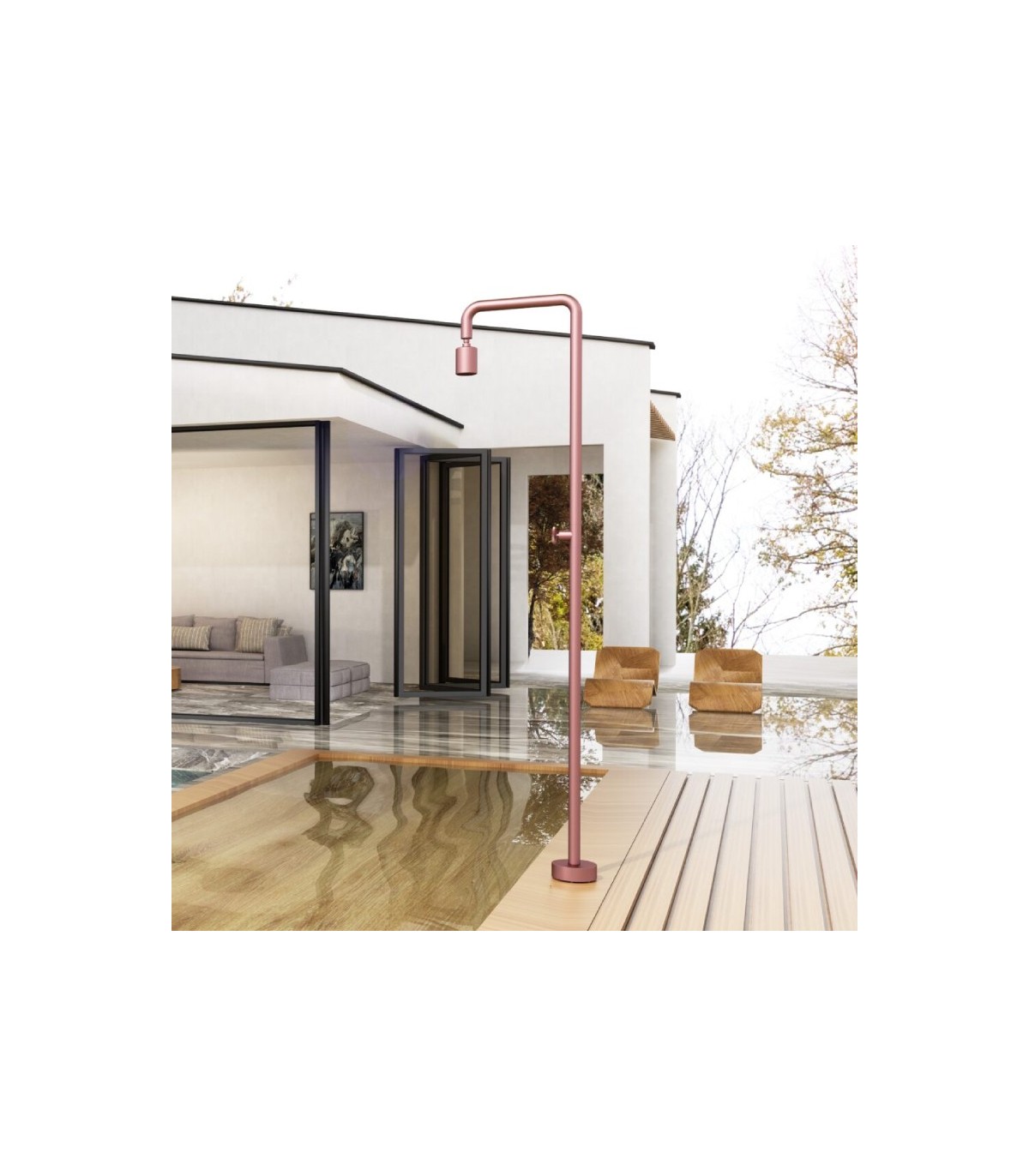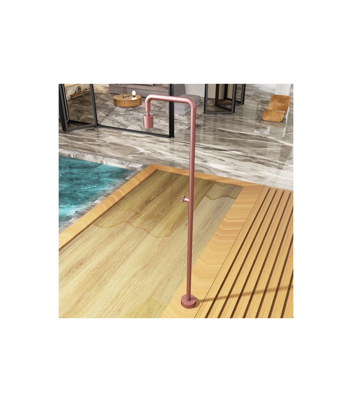 Conexão ao solo com flexíveis e pedestal em aço S.316, incluídos com o chuveiro.
