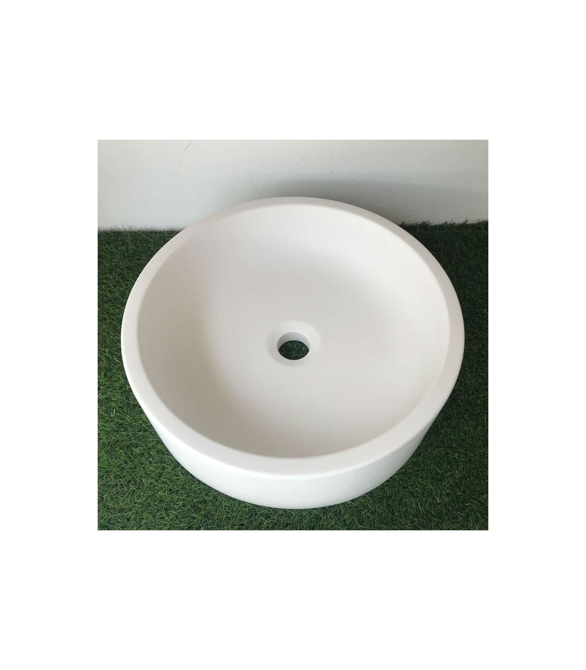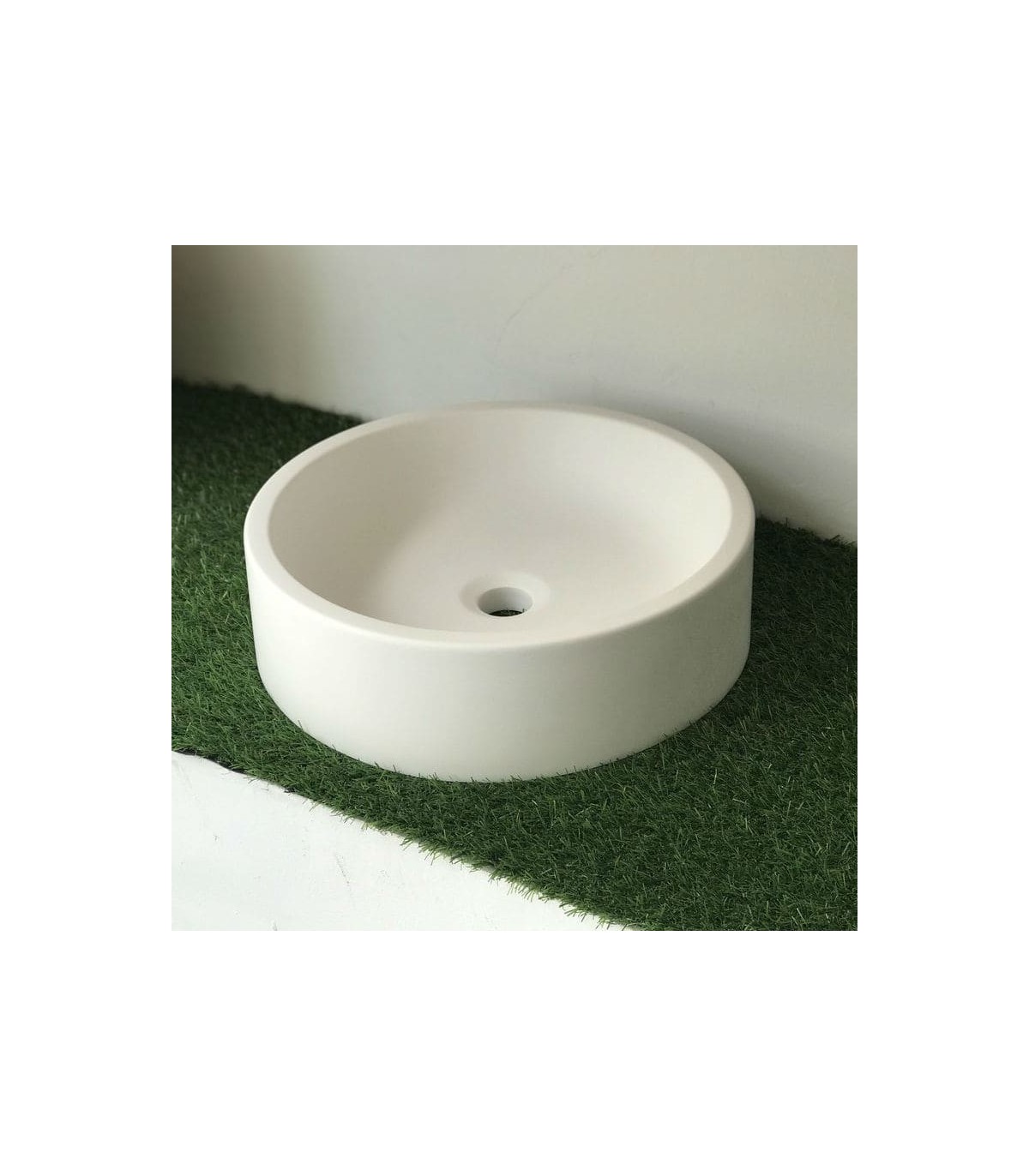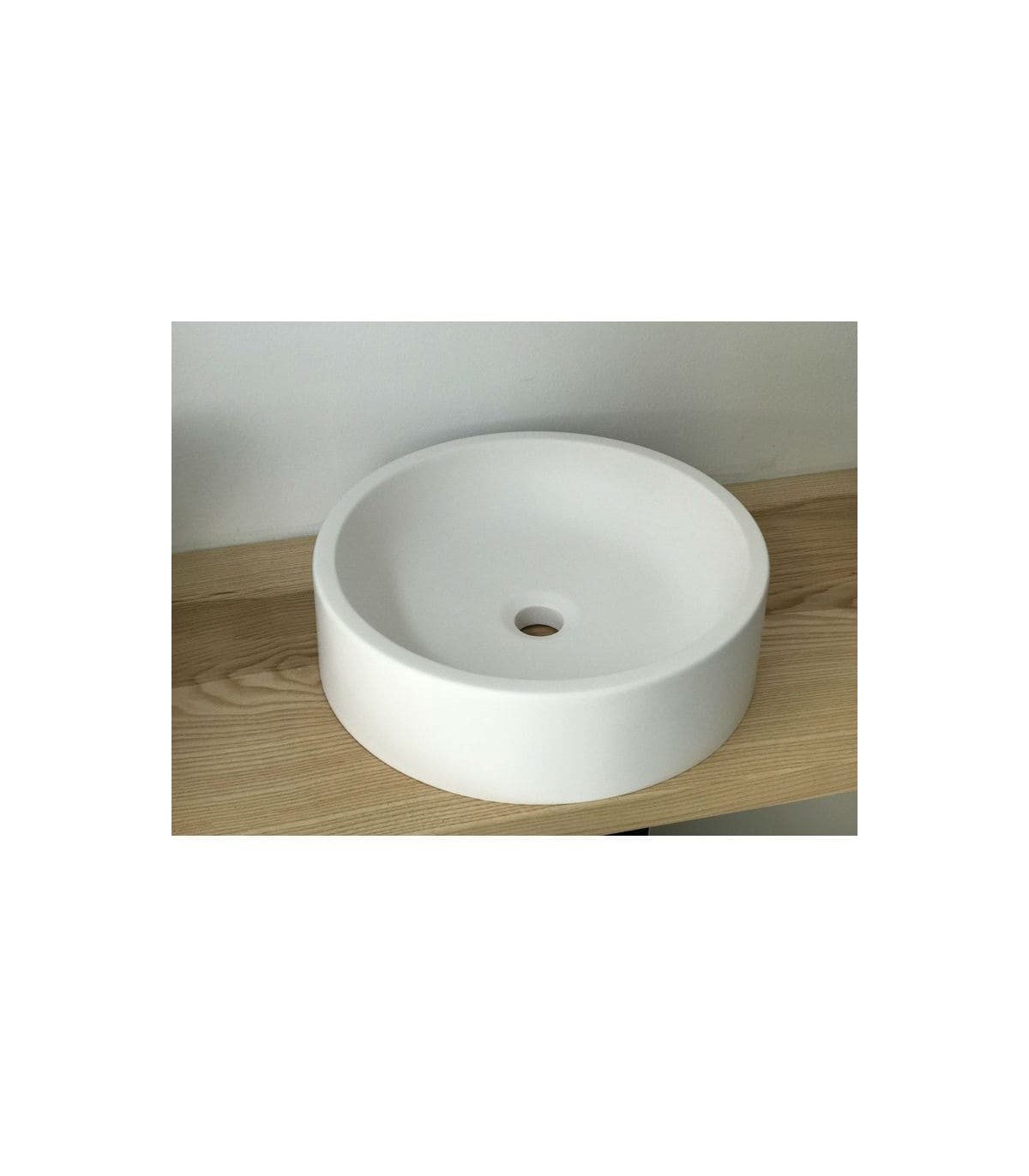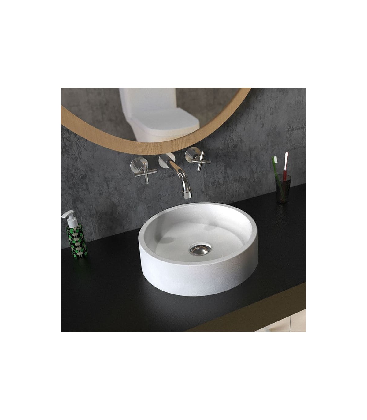 Lavatório de Solid Surface, design moderno e atual. A sua forma circular é ideal para criar uma atmosfera única.