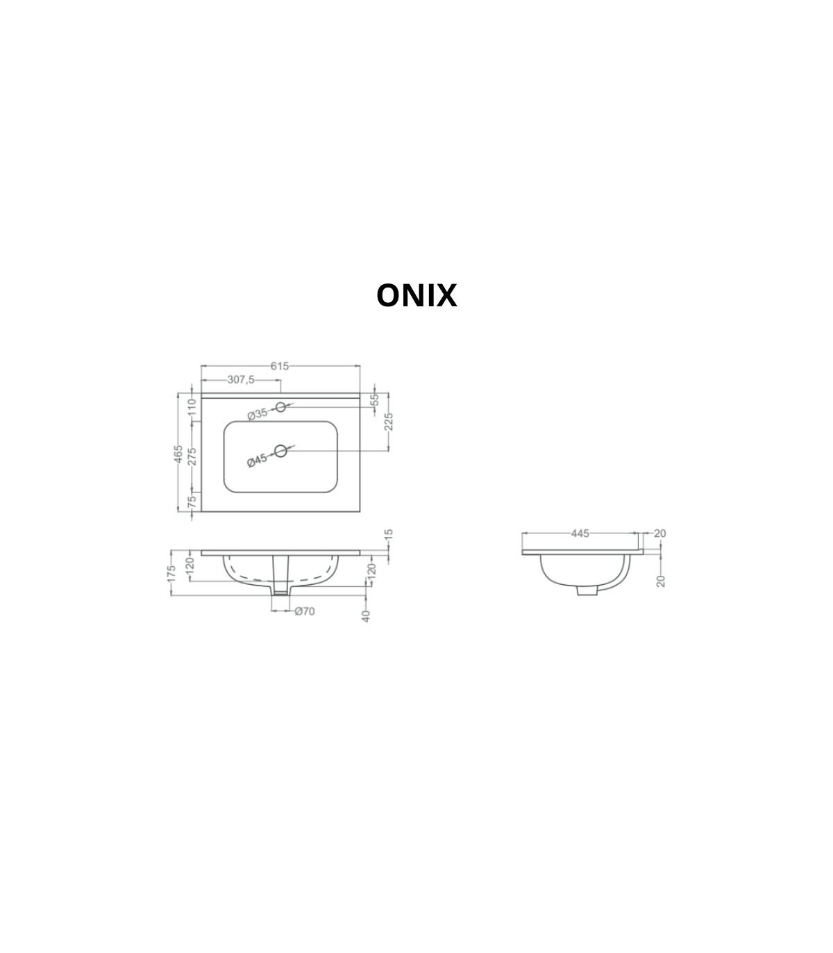 Dimensões do lava-loiça: 61 x 46 x 10 cm (largura x profundidade x altura).