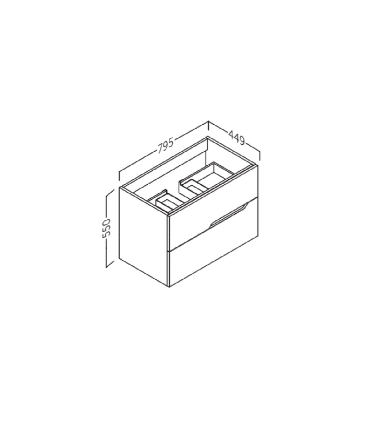 - Móvel de casa de banho suspenso com 2 gavetas.